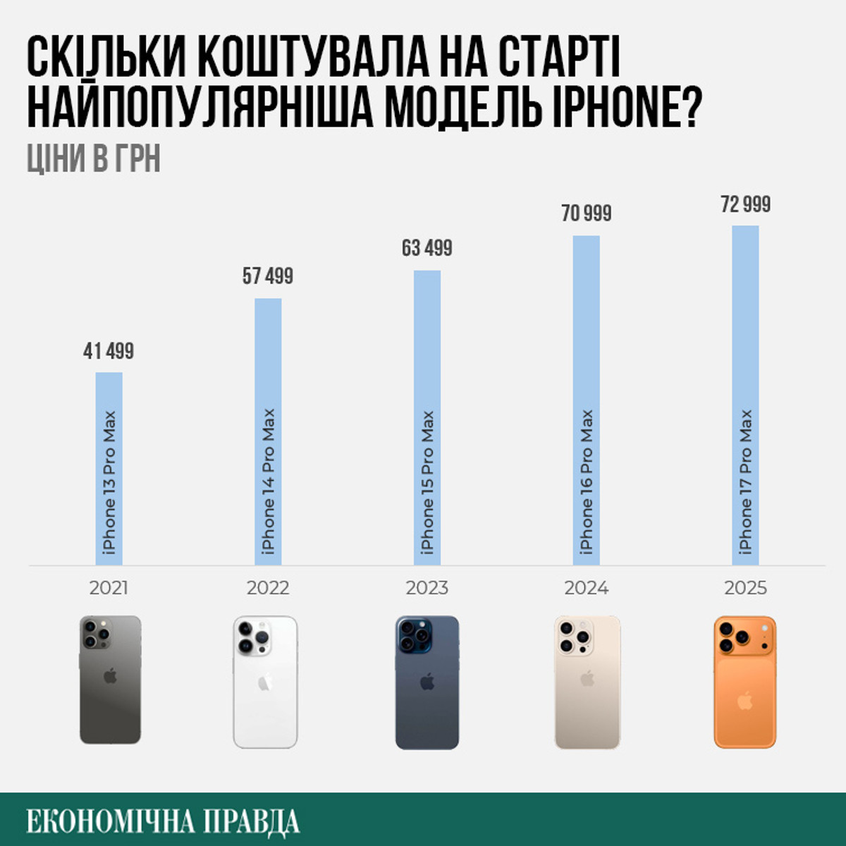 Натомість порівнювати українські та американські ціни не коректно, адже в США вартість на сайті Apple вказана без ПДВ, тож вона здається нижчою. У 2025 році офіційна стартова ціна нових моделей iPhone в Україні стартує від 46 799 грн за базову модель і далі залежить від конфігурацій та пам’яті.