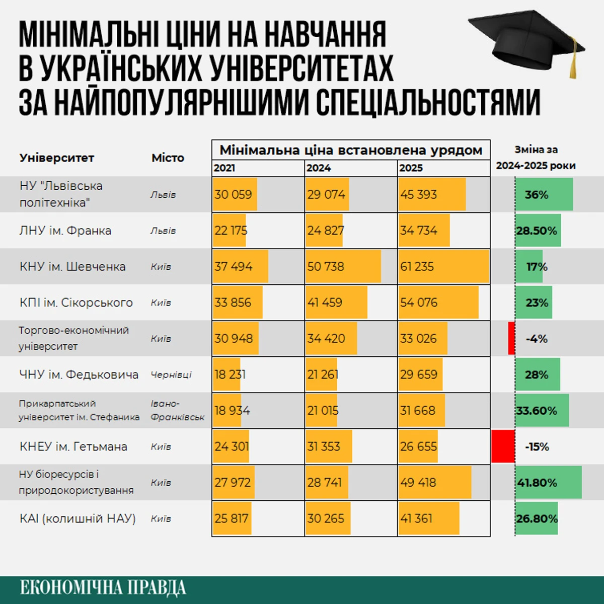 У 2025 році абітурієнтів очікує різке підвищення вартості навчання на контрактній формі в провідних університетах, передусім у Києві.