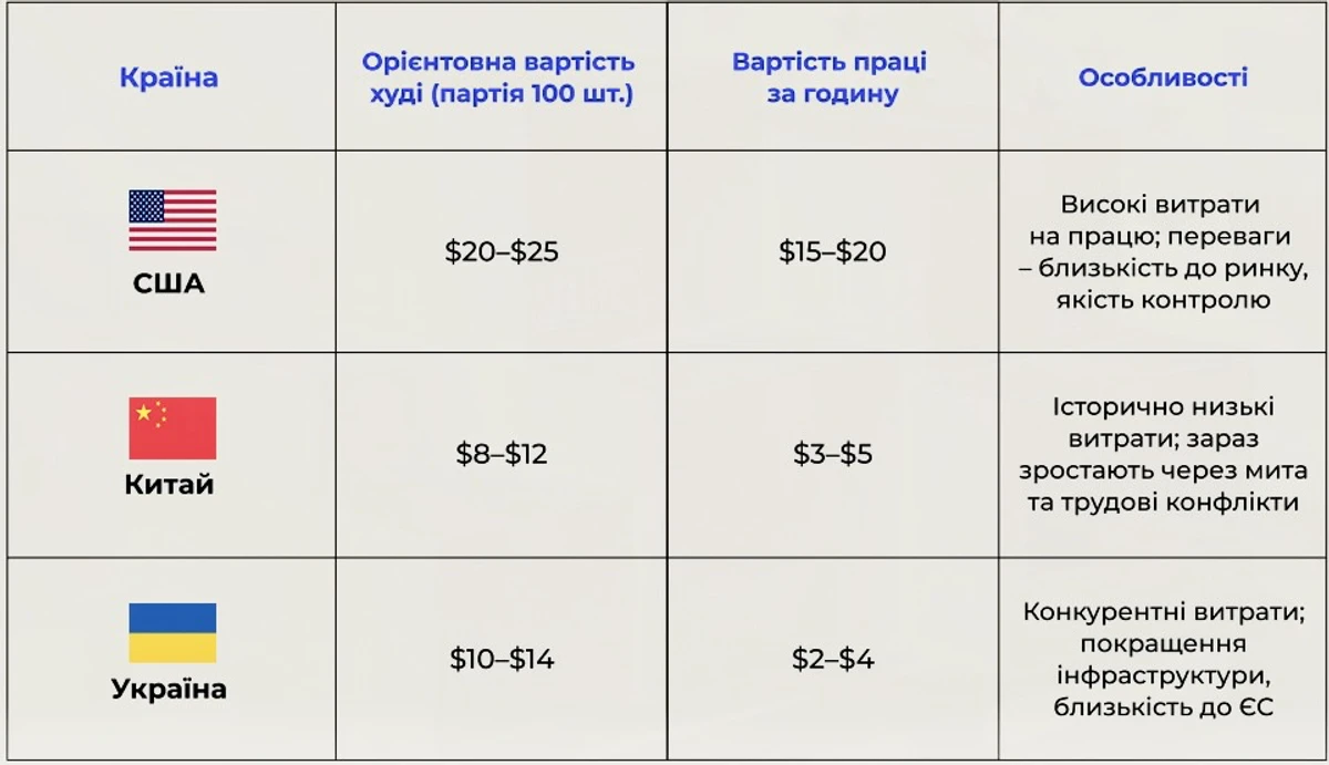 Порівняльний аналіз витрат на виробництво одягу