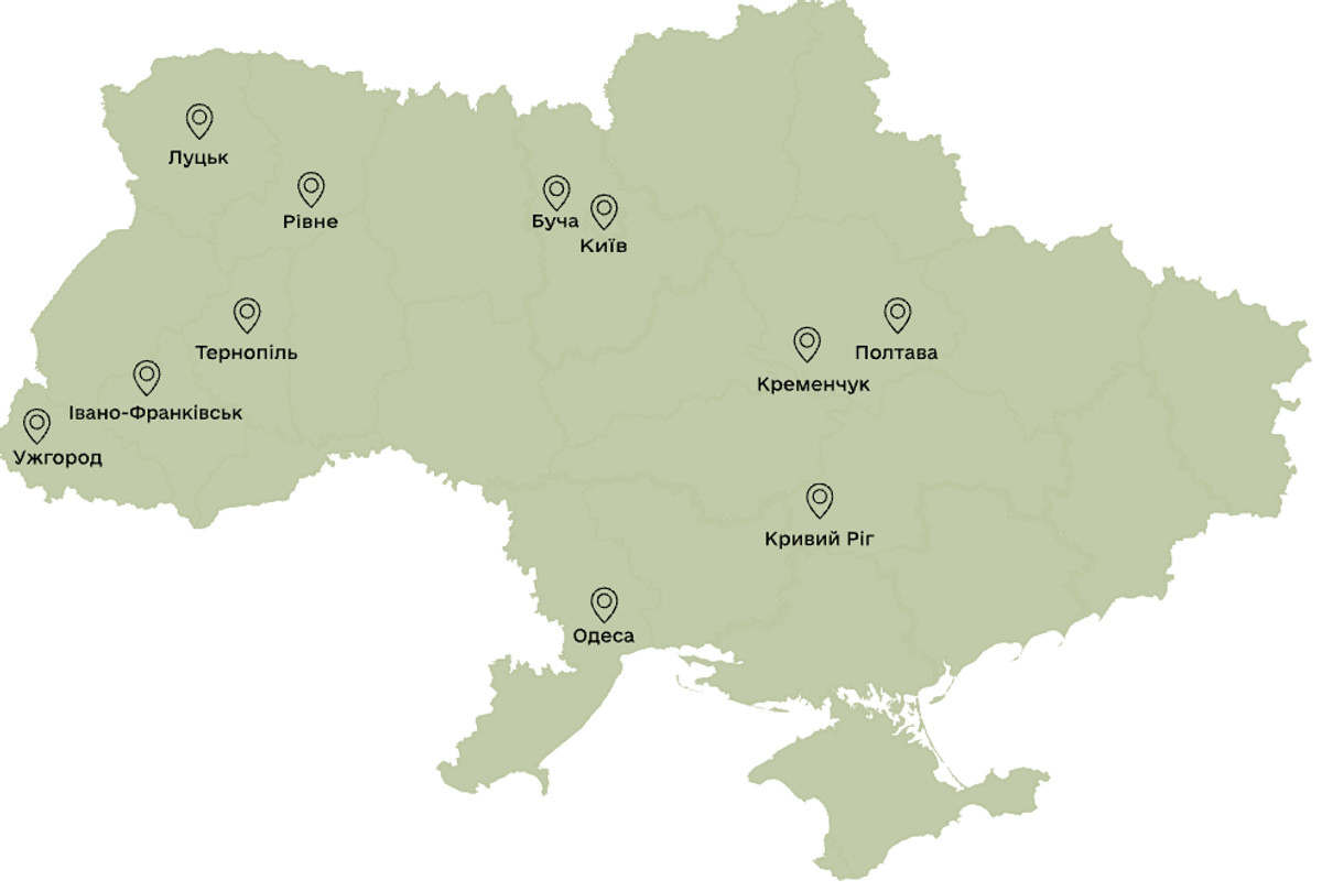 Міста, у яких діють центри підтримки підприємців Дія.Бізнес