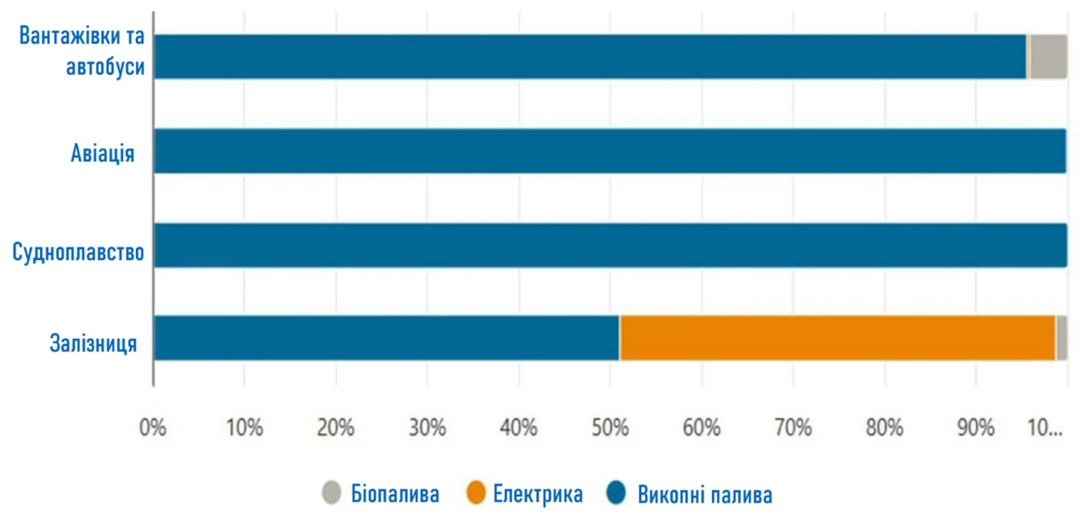 Використання пального у світі за видами транспорту, 2022 рік