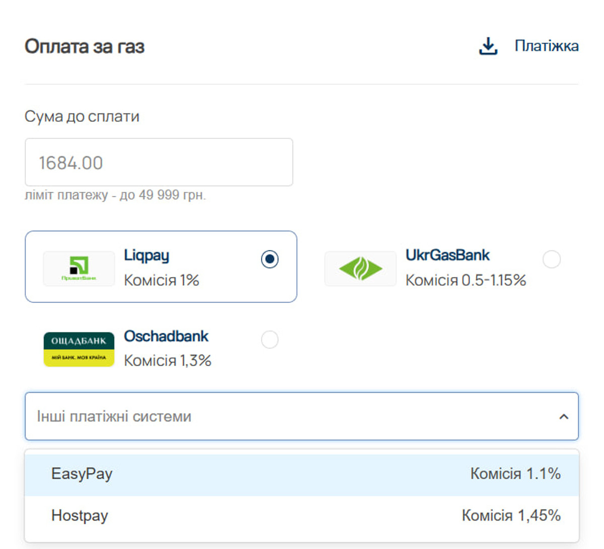 У випадку ж із "Газмережами" право вибору у споживача відсутнє. При цьому за свої послуги EasyPay бере різну комісію залежно від суми оплати.