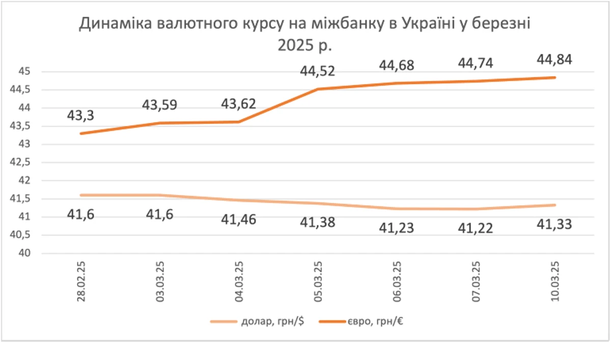 Станом на 10 березня, офіційний курс долара до гривні зменшився на 6 копійок, євро подорожчав на 17 копійок.