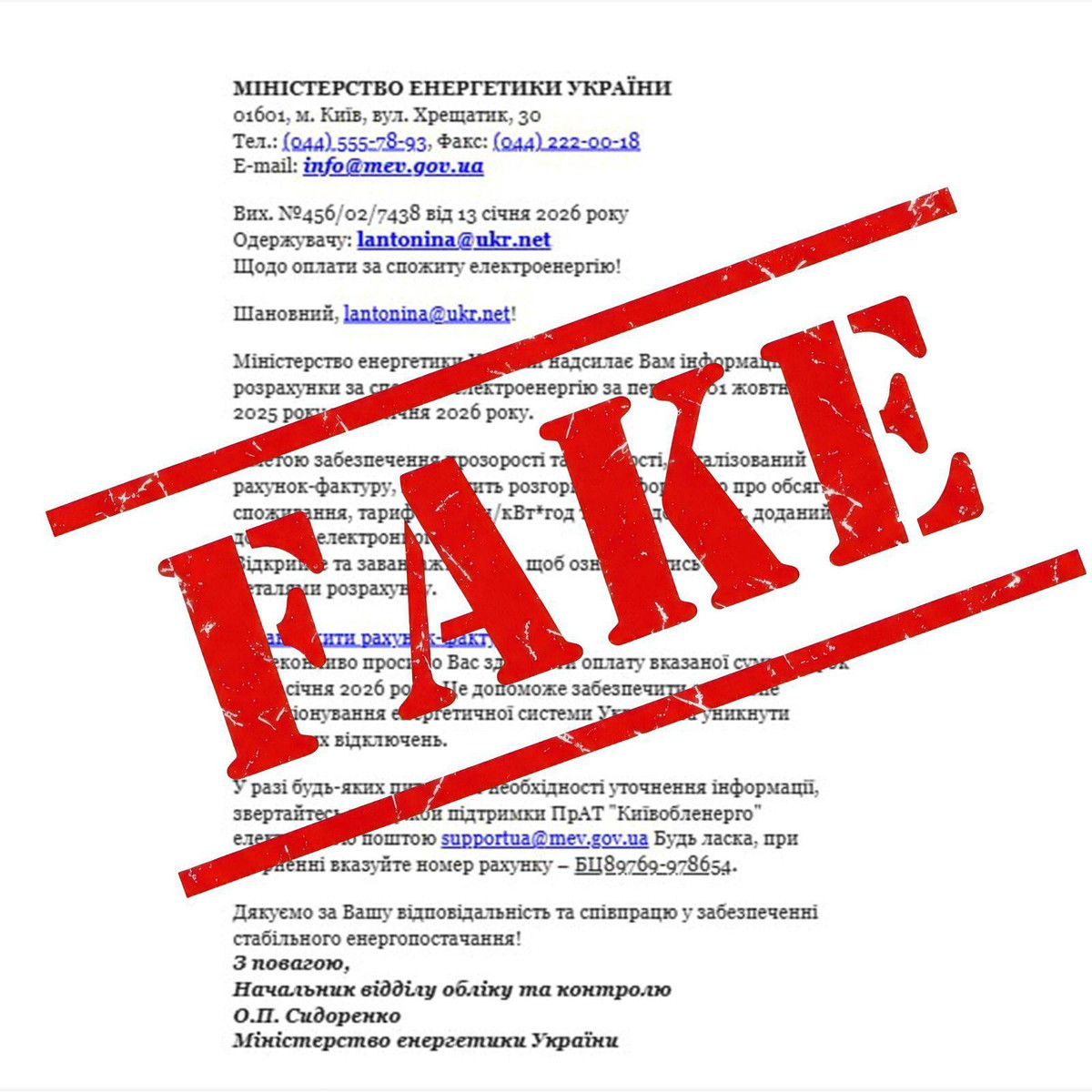 У Міненерго зазначили, що міністерство не здійснює таких розсилок, а вкладення можуть містити шкідливе ПЗ, яке створює ризик несанкціонованого доступу до комп'ютерів і даних.
