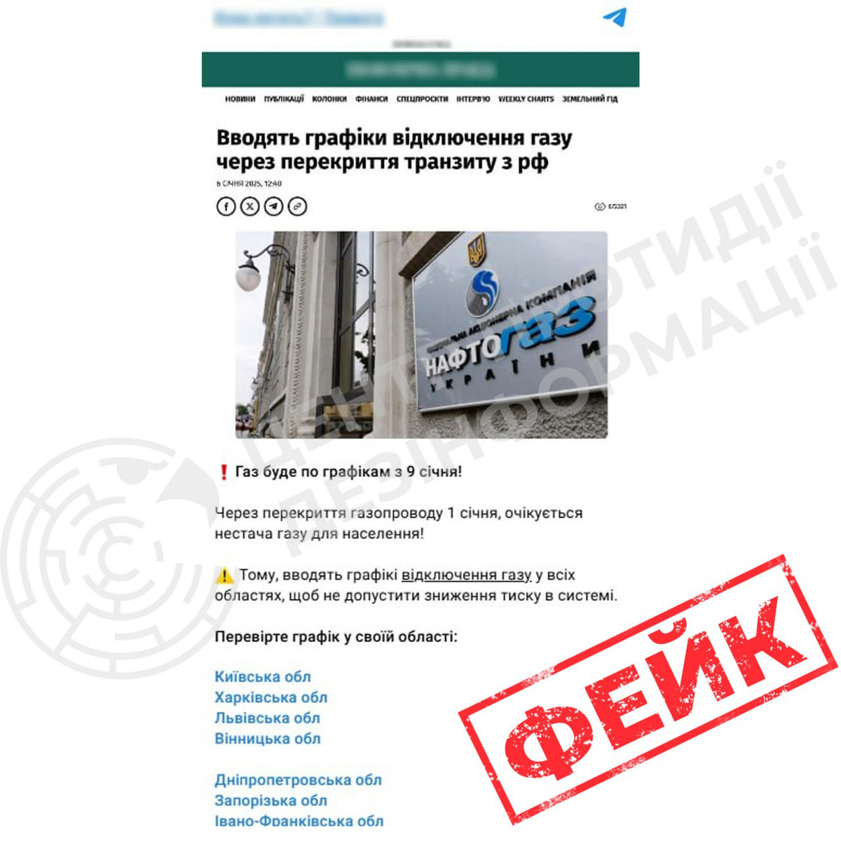 Інформація про графіки відключення газу, нібито у звʼязку з припиненням транзиту російського газу через Україну, не відповідає дійсності.