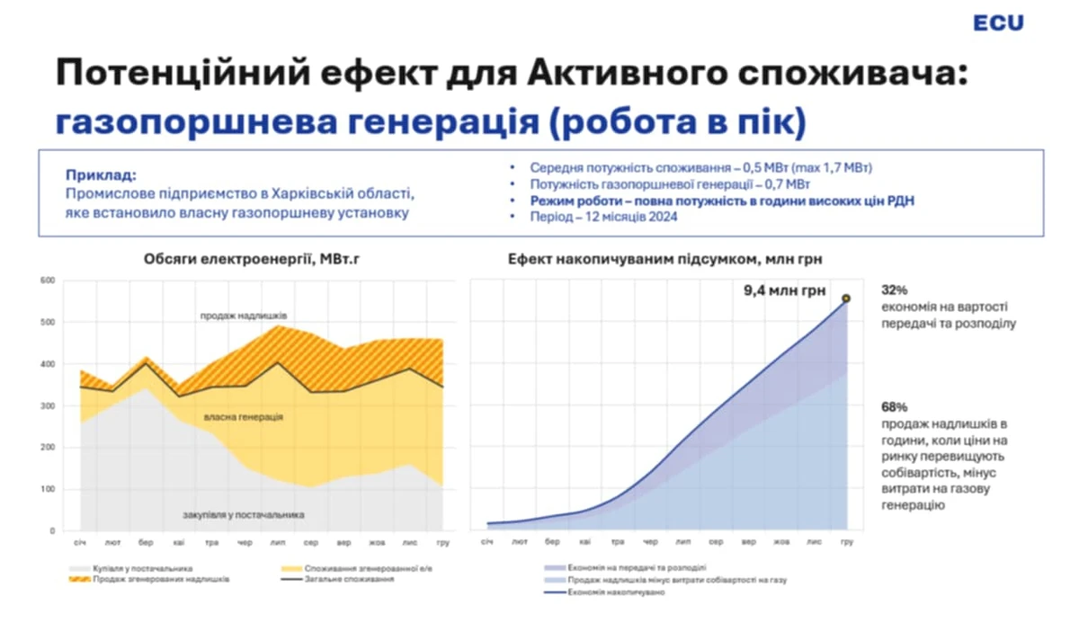 Наприклад, навесні, у години сонячної активності, пропозиція електроенергії на ринку значно перевищує попит, що спричиняє режимні обмеження, які вводять диспетчери "Укренерго" для забезпечення балансу та стабільності системи. У такі години доцільно розвантажувати свою установку і не спалювати дорогий газ, натомість купувати порівняно дешеву електроенергію на ринку.