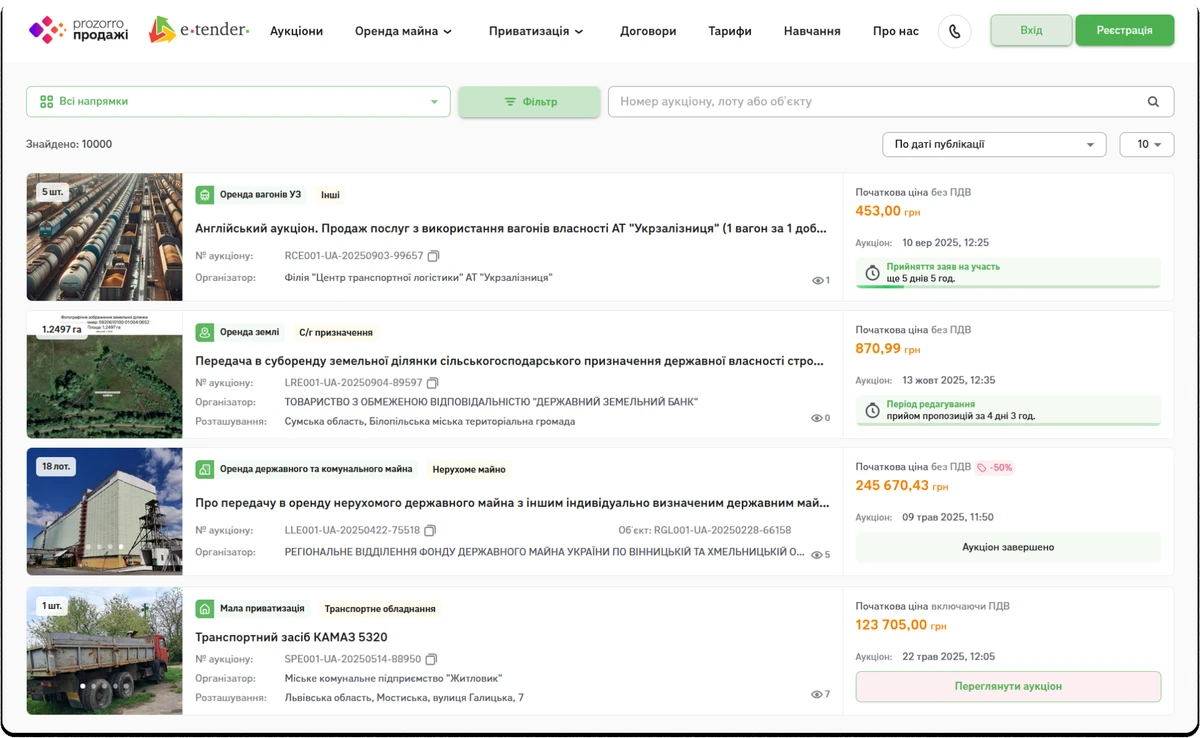 Якщо ви представник агросектору, через систему електронних аукціонів ви можете знайти: