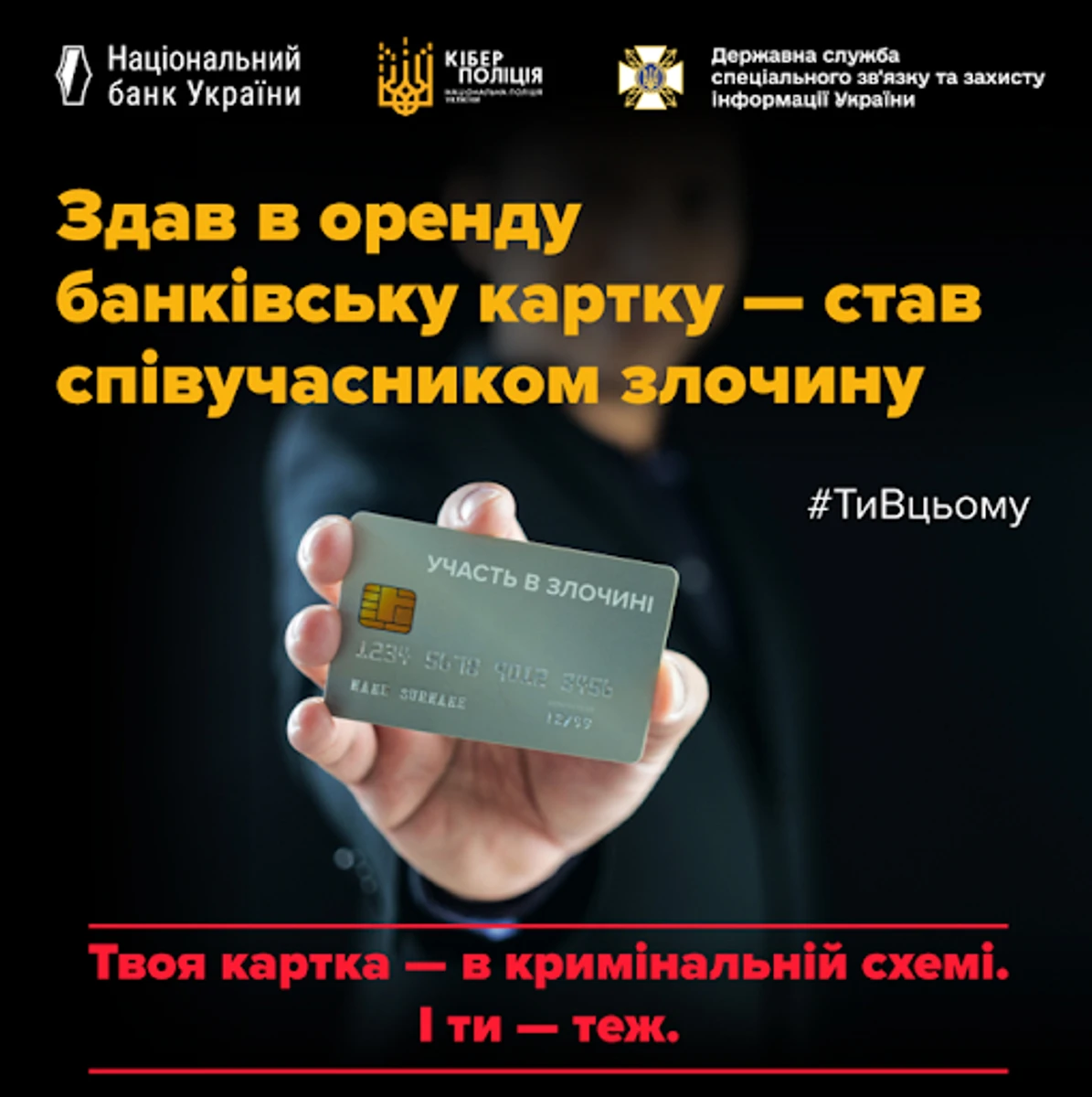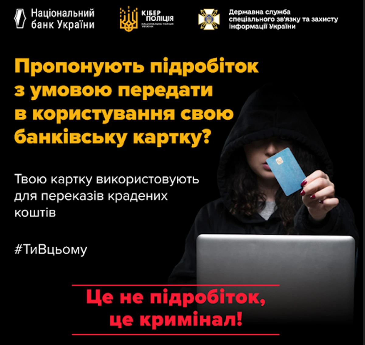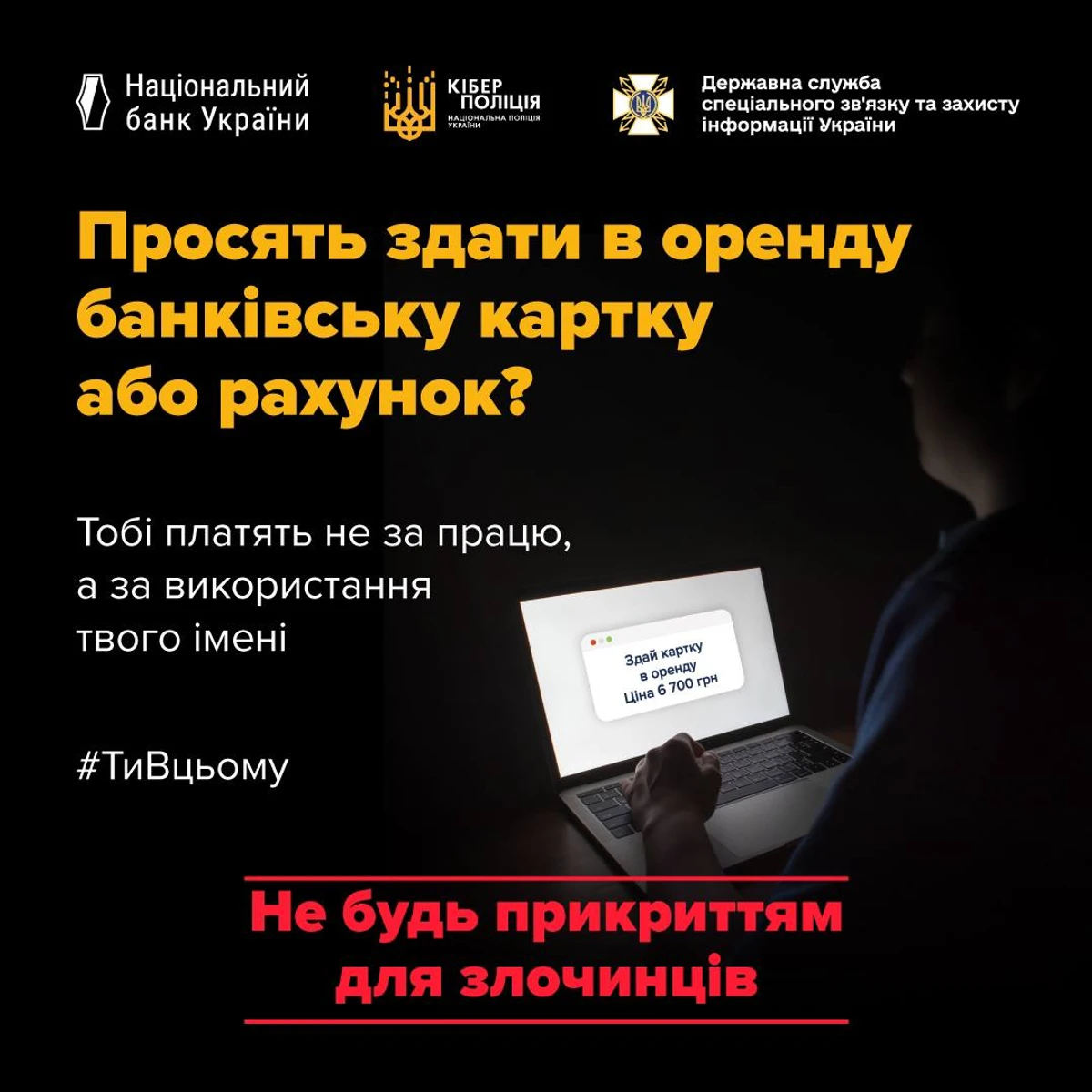Остерігайтеся пропозицій "орендувати" вашу картку чи банківський рахунок!