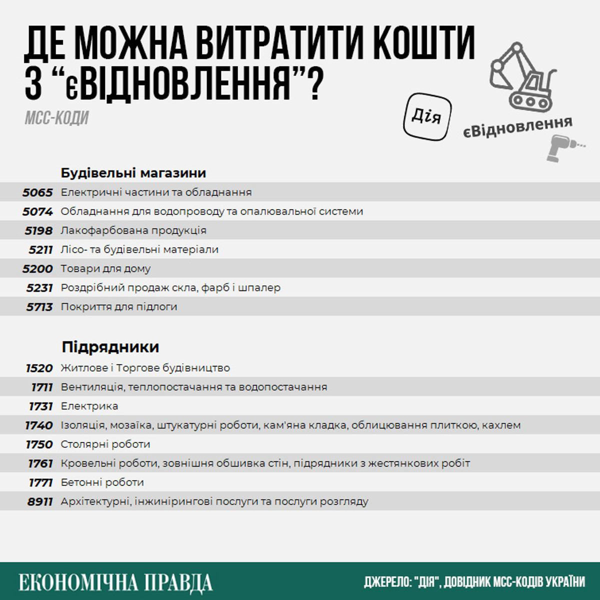 Будівельні магазини та підрядники, які виконують ремонти, мають бути зареєстровані за відповідними МСС-кодами.