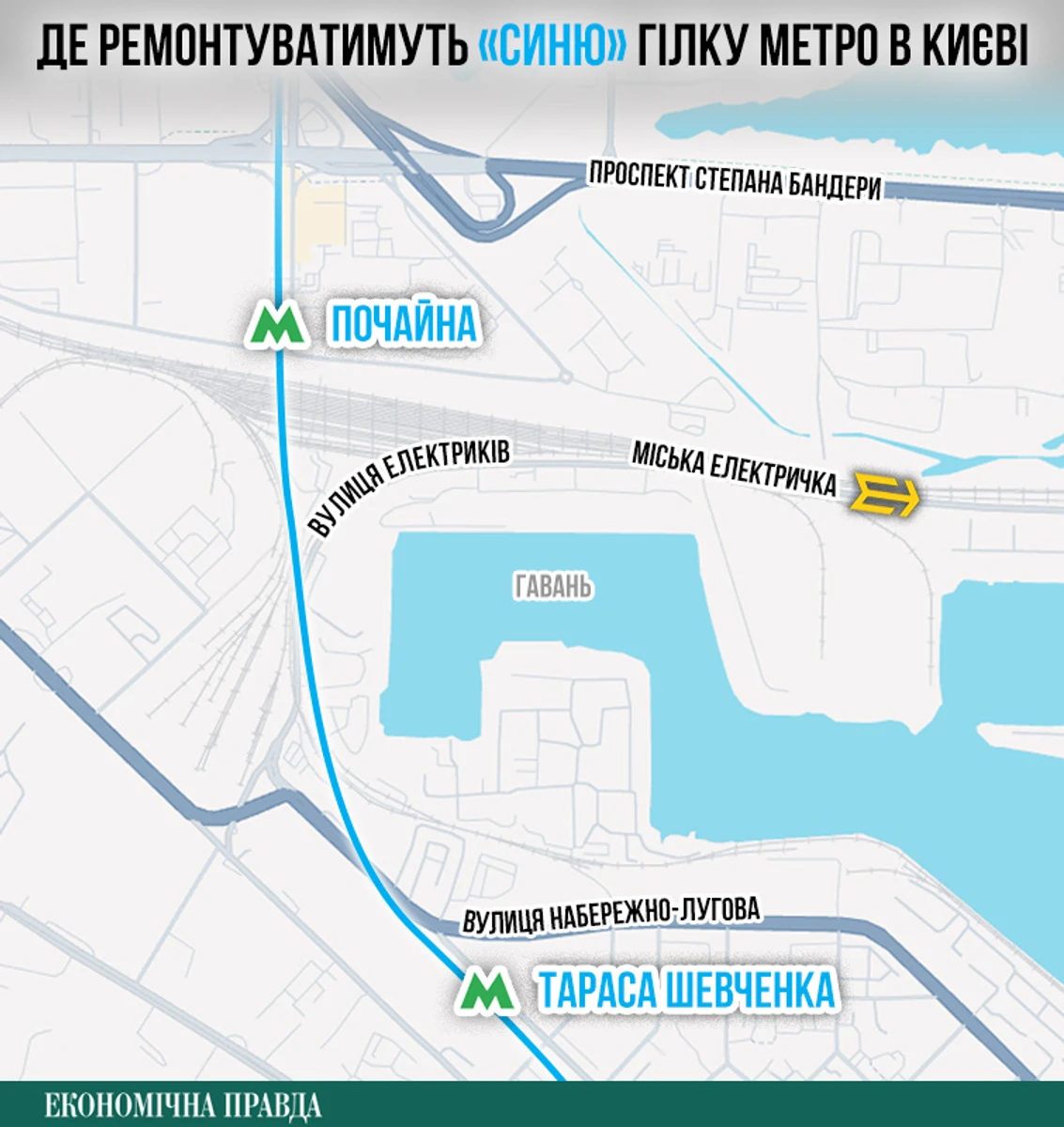 Довжина перегону між "Тараса Шевченка" і "Почайною" становить 1240 метрів, тобто планували відремонтувати не весь тунель, а конкретну ділянку завдовжки близько сьомої частини перегону. Вона знаходиться ближче до станції "Почайна", поруч з коліями однойменної станції залізниці.