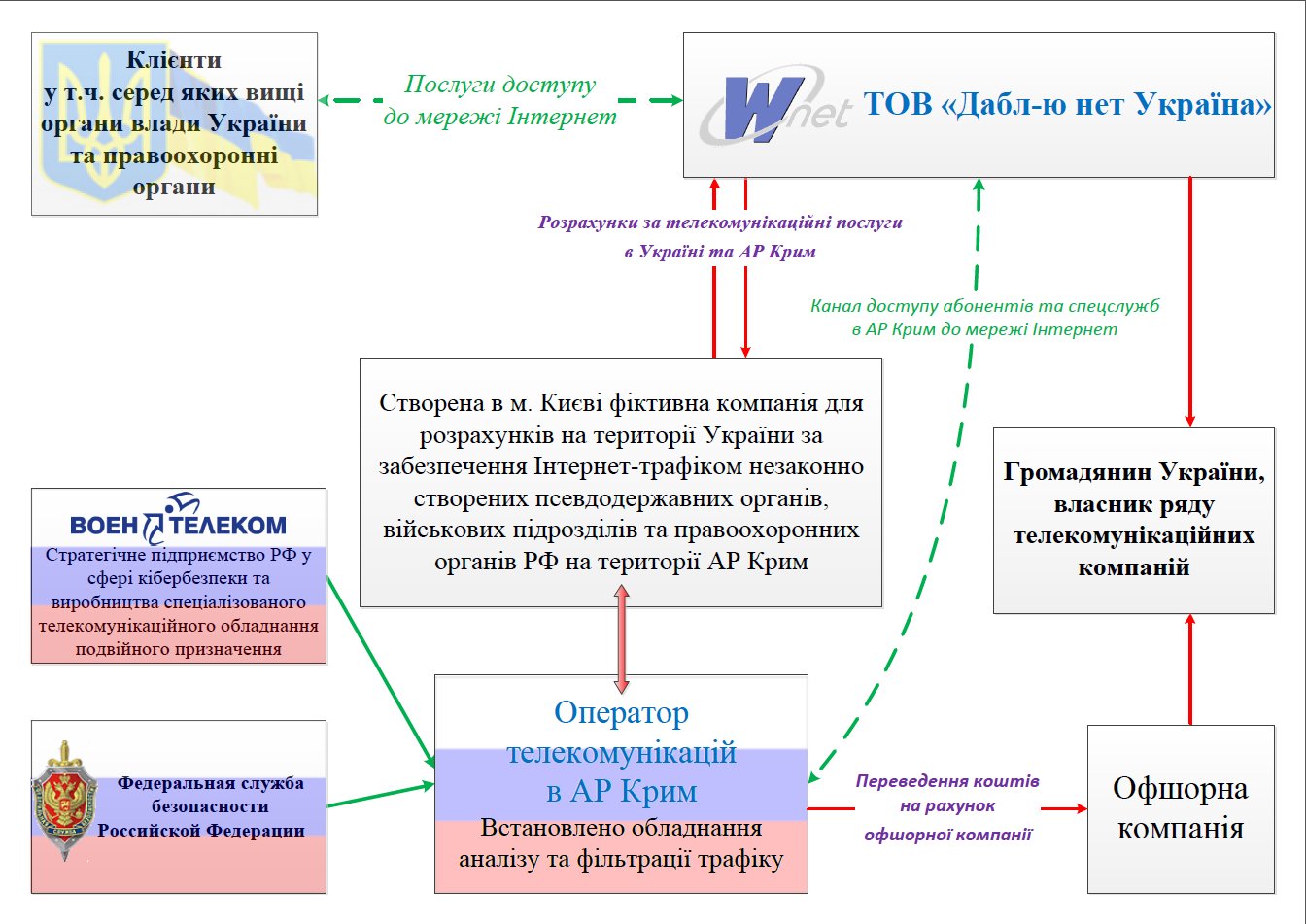 Співробітники СБ України також встановили, що завдяки трафіку, отриманому від українського провайдера через магістральний канал, послуги доступу в інтернет отримували ФСБ в Криму, Воєнтелеком РФ і псевдодержавні підприємства зв'язку.