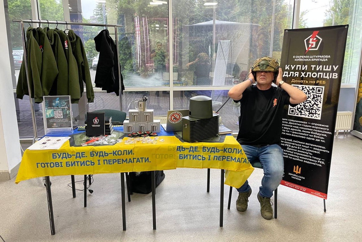 Ключовими елементами інсталяції стали РЕБ та тактичні навушники, у яких дзижчать ворожі дрони – звук, що супроводжує наших захисників на передовій. Ця інсталяція – звукова реальність війни, перенесена у центр креативної спільноти.