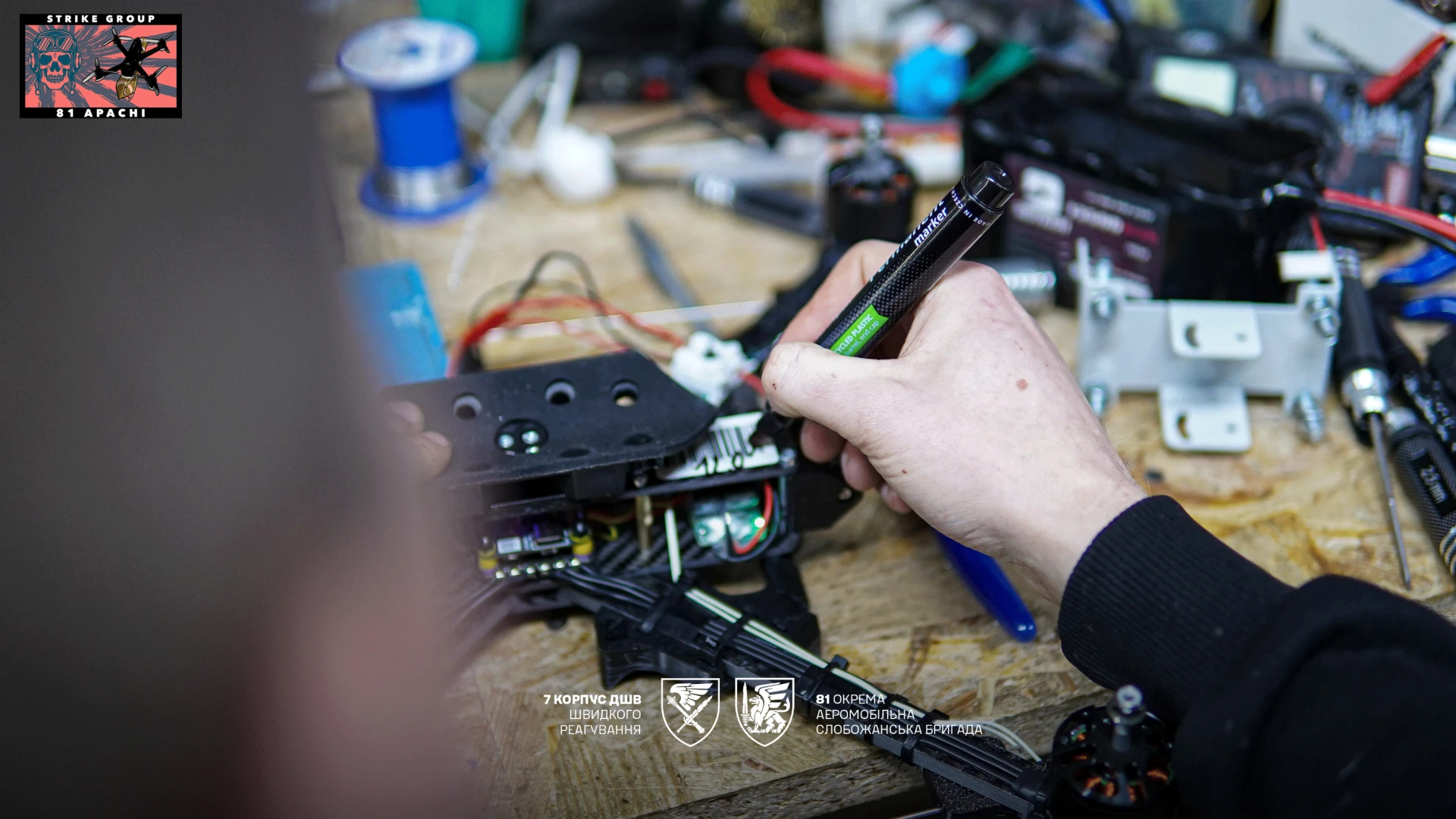 У майстерні батальйону безпілотних систем "Апачі" 81 окремої аеромобільної Слобожанської бригади 7 корпусу швидкого реагування ДШВ кипить робота: тут і ремонтують дрони, і складають БПЛА, а недавно ввели окремий напрям: мотають котушки з оптоволокном, а корпуси для намотування оптоволокна друкують на 3D-принтері. Тут працюють і з "аналоговими" БПЛА, і з дронами на оптоволокні.