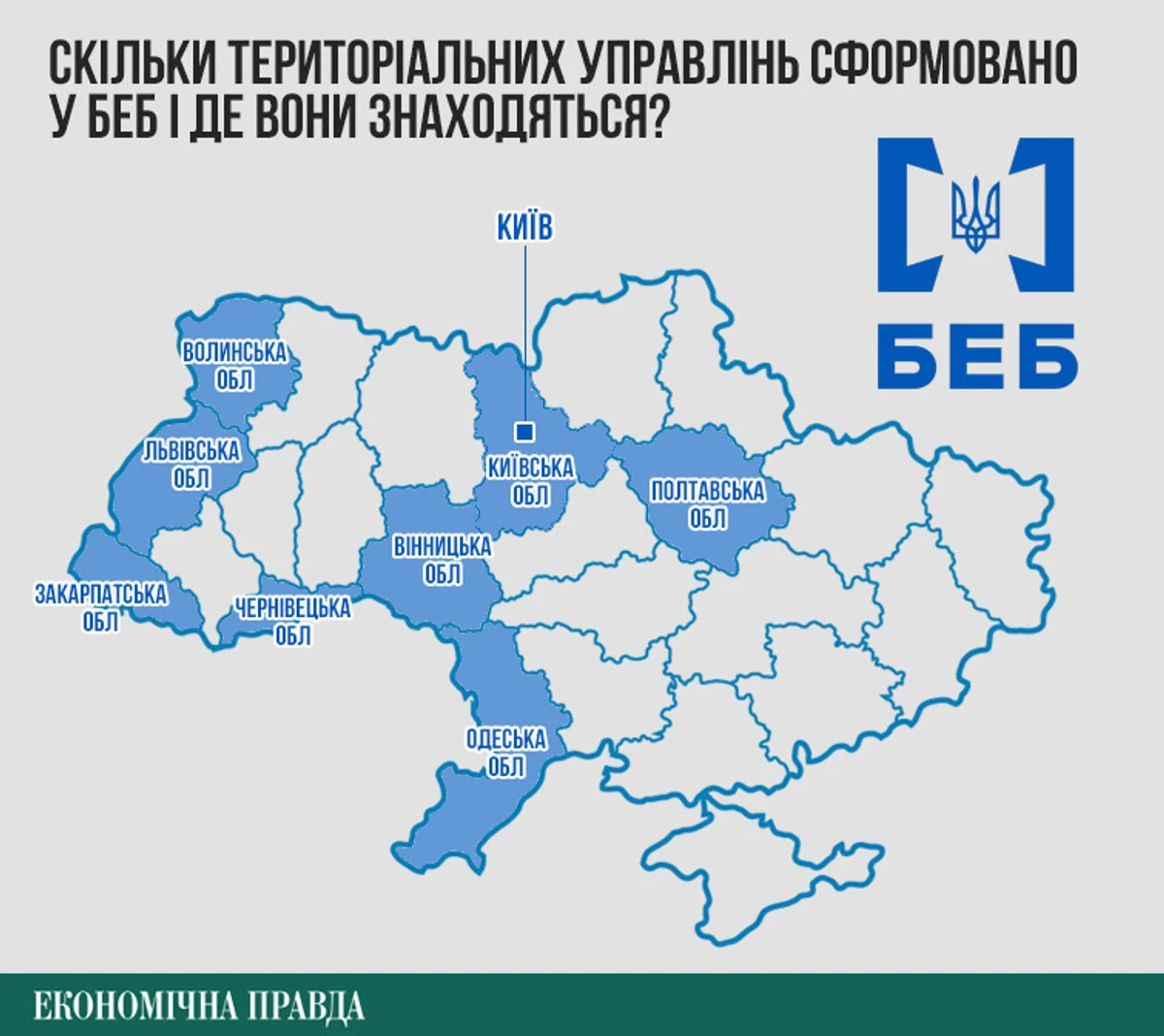 За 5 років існування БЕБ так і не зумів сформуватися як орган: із 24 теруправлінь, передбачених законом, наразі сформовано та функціонує лише 9. Іншими словами, у 15 областях представники БЕБ відсутні, тож не можуть здійснювати оперативне реагування на економічні злочини.