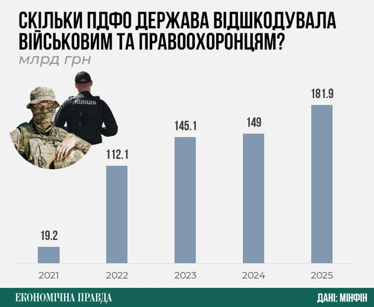За даними Міністерства фінансів, у 2025 році держава повернула військовослужбовцям та правоохоронцям майже 182 млрд грн сплаченого податку – вдесятеро більше, ніж до початку великої війни.