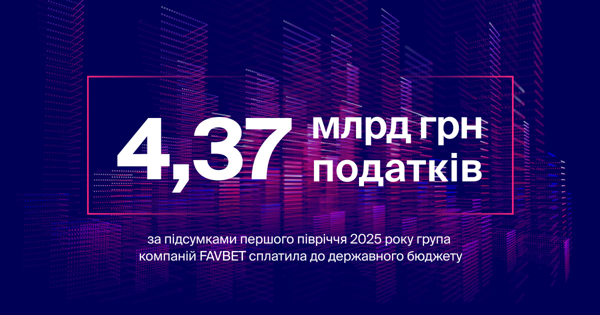 FAVBET сплатив 4,37 млрд грн податків за перше півріччя 2025 року