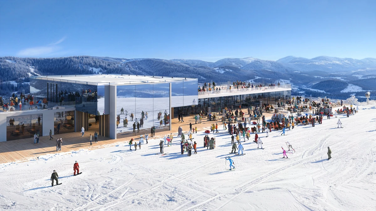 Mountain Centre стане одним із ключових публічних просторів курорту та інфраструктурним вузлом на вершині гори. Подібні центри є важливою частиною провідних європейських гірських курортів – це місце, де відвідувачі можуть пересідати з одних підйомників на інші, відпочити, поїсти, провести час із дітьми або відвідати події.