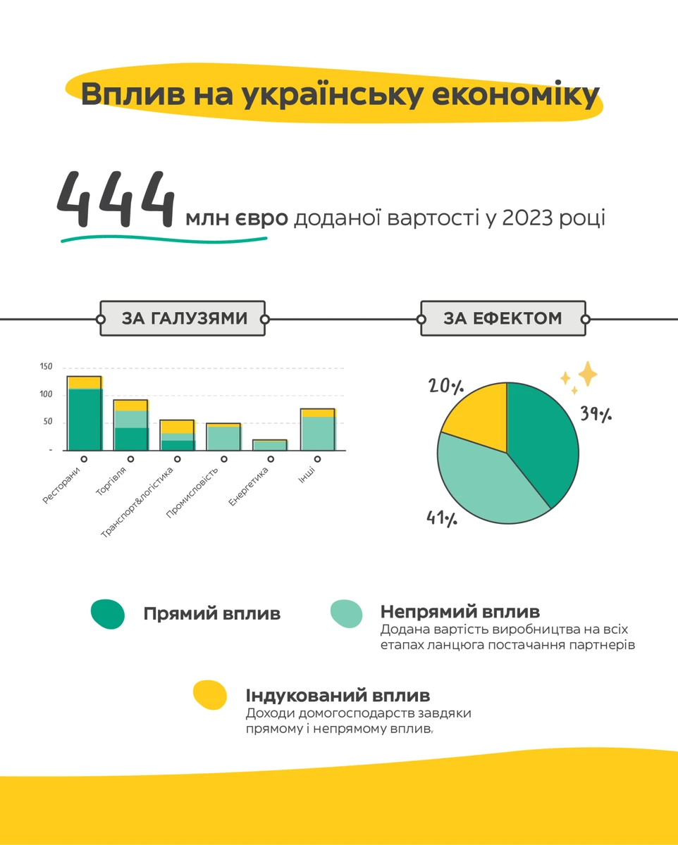 "Ми пишаємося досягненнями команди у надскладних умовах. Проте окремо взятий бізнес не може розвиватися у вакуумі. Наша місія як лідера індустрії — не тільки зростати самим, а й сприяти зростанню інших. Тому ми раді, що разом з партнерами ми допомогли створити 444 млн євро доданої вартості для української економіки у 2023 році", — зазначила генеральна директорка Glovo в Україні Марина Павлюк.