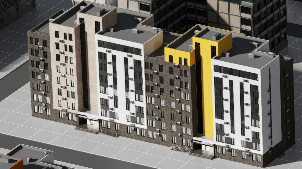 Це житлова забудова (будинки на 1-8 поверхів, гуртожиток, готель), соціальна інфраструктура (школа, дитсадок, амбулаторія) та інфраструктурні об’єкти (паркінг, спорткомплекс та підземне укриття).