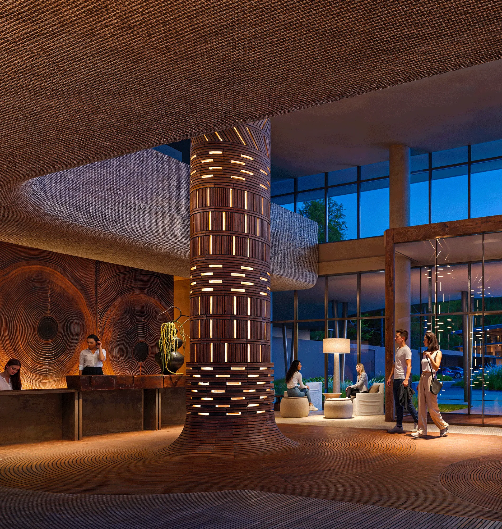 У лобі центральним елементом стане великий зріз дерева з річними кільцями, що символізує довготривалість та естетику поза часом. Це архітектура, розрахована на довгі роки, яка залишатиметься актуальною для багатьох поколінь.