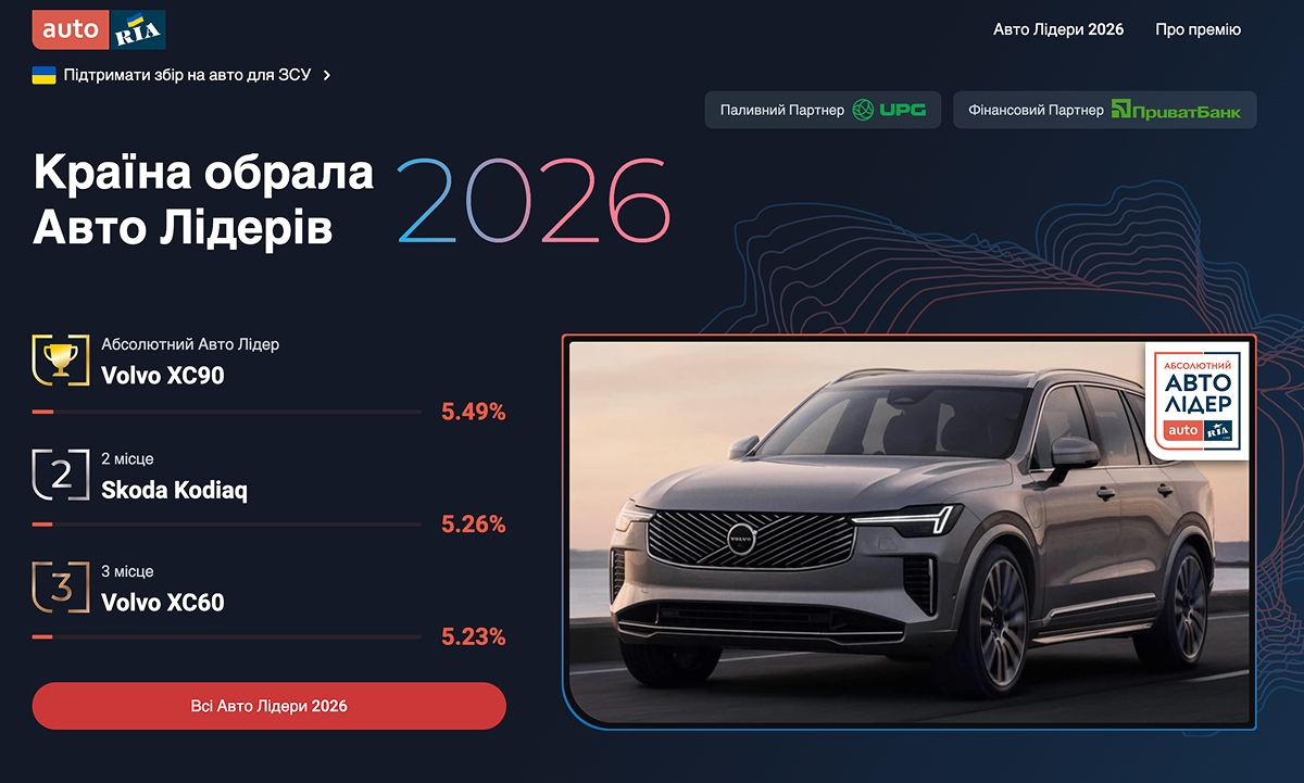 – Якщо взяти "Абсолютних Авто Лідерів" попередніх років, то видно, що українці голосують "за мрію". Але потім цю мрію перетворюють у життя безпосередньо в автосалоні. Тобто це достатньо популярні автомобілі. Так, у 2025 році звання "Абсолютного Авто Лідера" отримала Toyota Land Cruiser Prado. І попри те, що вартість цього автомобіля суттєво перевищує середній бюджет, який українці зазвичай готові витратити на нове авто, сьогодні Prado посідає четверту позицію в річному рейтингу продажів. Дійсним "Абсолютним Авто Лідером" 2026 став Volvo XC90. Я впевнений, що ця автівка також достойно продаватиметься протягом наступного року.