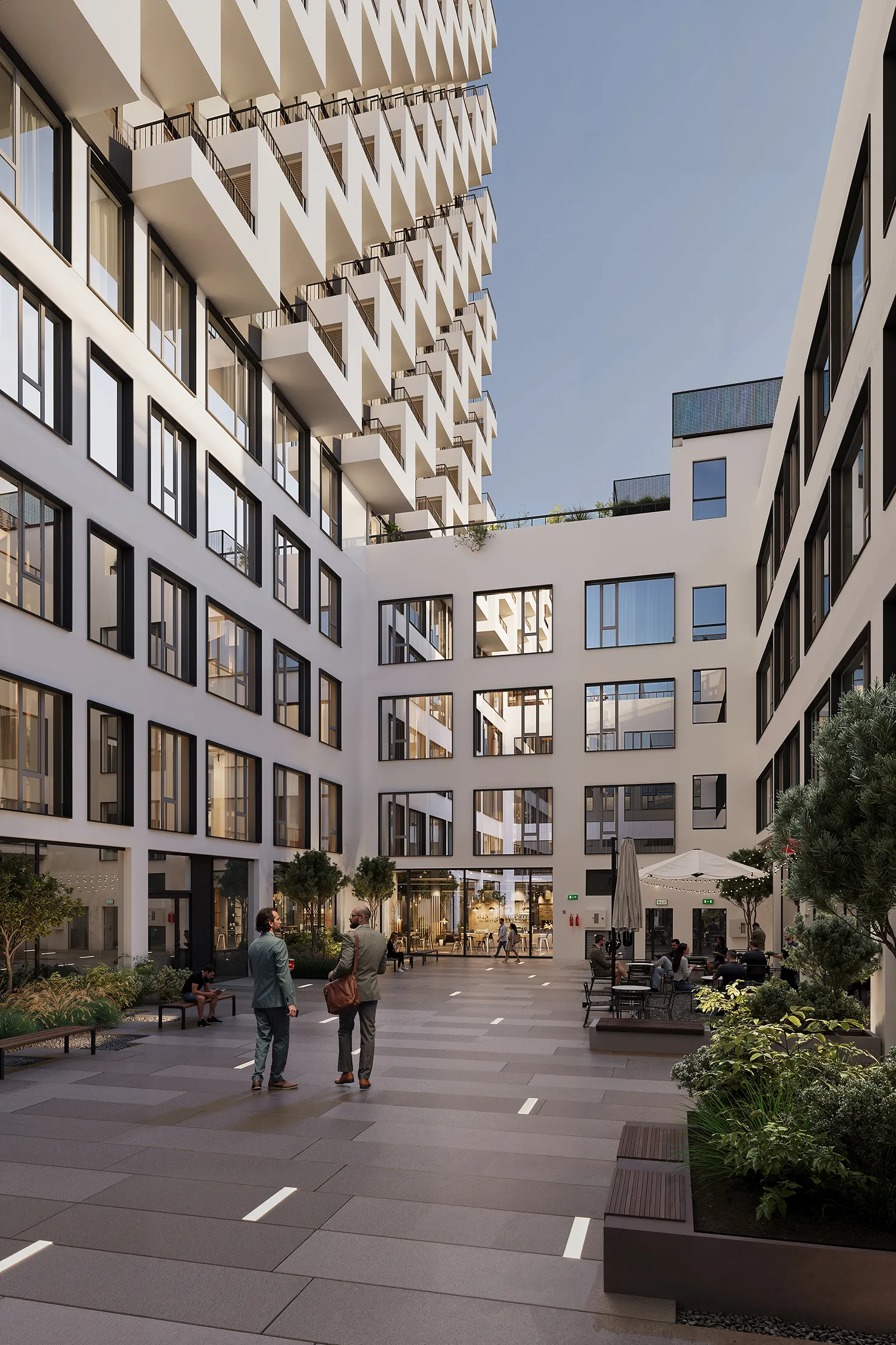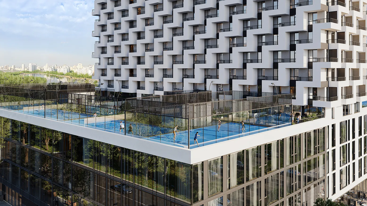 У BOSTON Creative House можна почати день з кави та сніданку в кафе поруч із офісом, а не вдома поспіхом; в обідню перерву – не шукати, куди дістатися, а просто спуститися на перший поверх або пройти кілька кроків до ресторану; після роботи – обрати, чи піти на тренування, чи неквапливо прогулятися парковими алеями, що ведуть до води, даючи змогу перепочити розуму після насиченого дня.