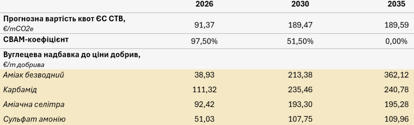 Для украинского агросектора ключевой эффект косвенный. Хотя аграрная продукция формально не охвачена CBAM, подорожание аммиачных удобрений из Евросоюза будет означать дополнительное ценовое давление на агропроизводителей в ближайшие годы.