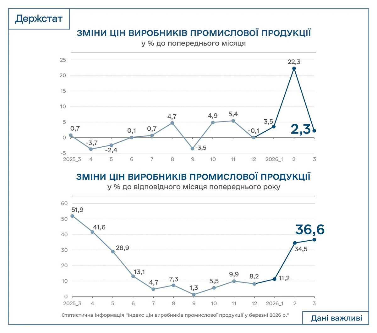 В Украине в марте 2026 года цены производителей промышленной продукции увеличились на 2,3% по сравнению с февралем этого года и на 36,6% в годовом измерении, то есть по сравнению с мартом 2025 года.