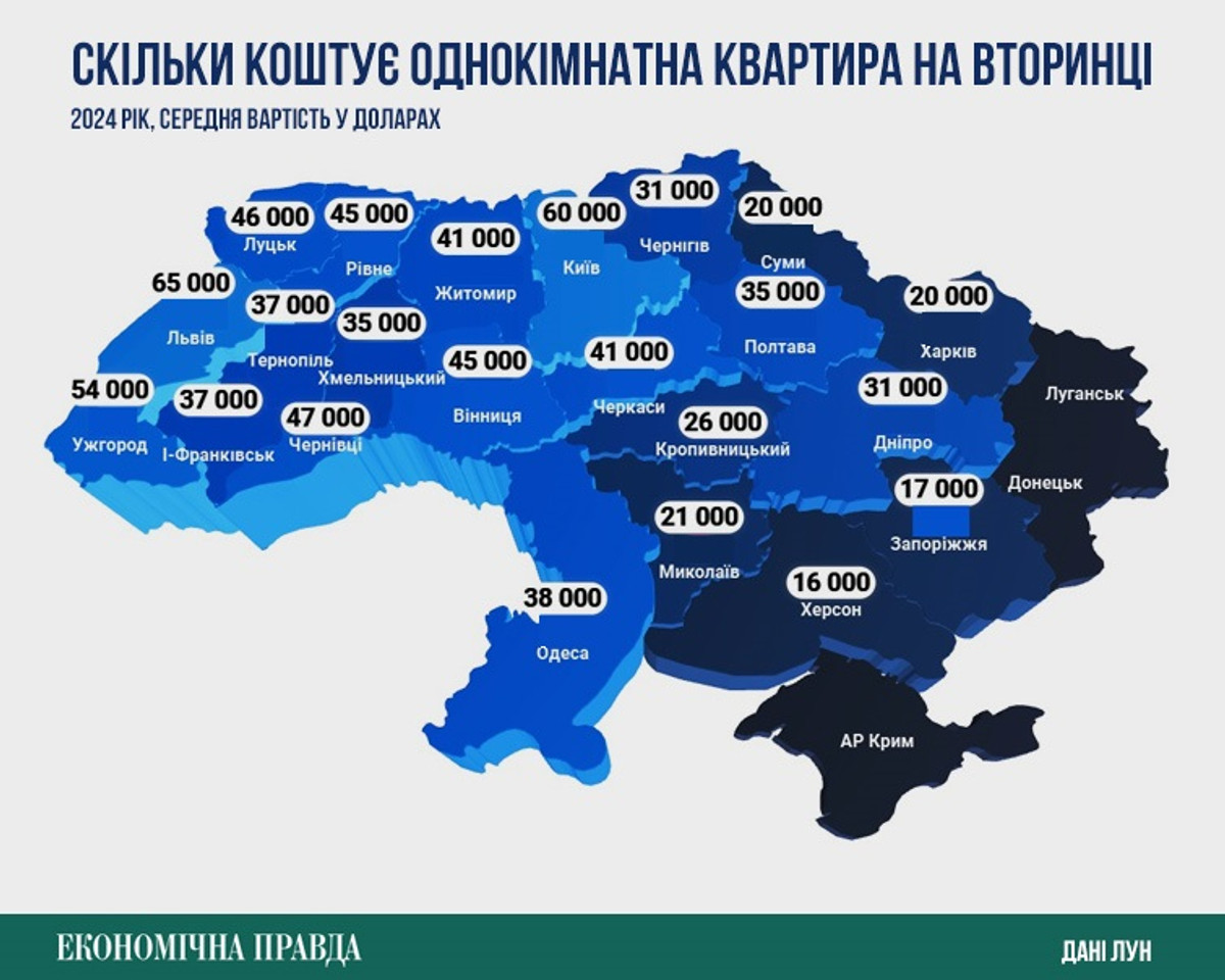 Лидерами по темпам роста жилья на "первичке" стали Кропивницкий (+33%), Ровно (+24%), Ивано-Франковск, Черновцы и Винница (21%). При этом в долларовом эквиваленте рост в этих пяти городах составил 8-19%.