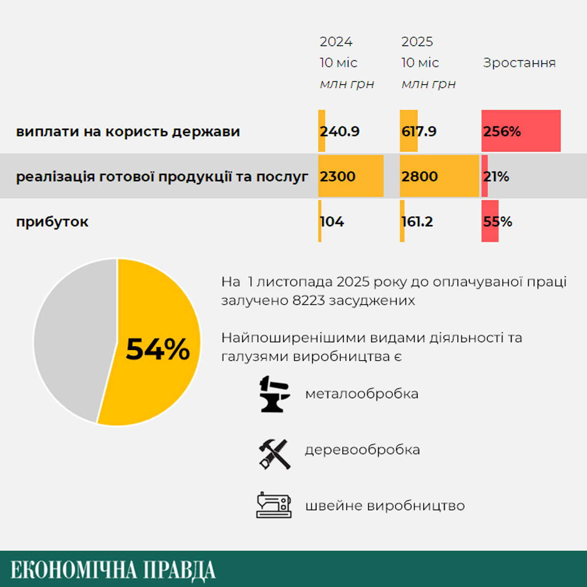Средний размер заработной платы осужденных в Украине по состоянию на ноябрь 2025 года составил 5479 грн – это на 679 грн больше, чем в прошлом году, свидетельствуют данные Департамента по вопросам исполнения уголовных наказаний Министерства юстиции.