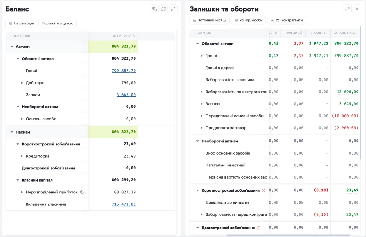 Продемонстрировать важность баланса можно на товарном бизнесе. Собственник смотрит на P&L - видит прибыль, смотрит на CashFlow - видит поступления, но при этом работать крайне сложно. Почему? А потому, что 500 тыс. грн заморожены на складе, потому что вы ранее закупили товар у производителя, но еще не успели его продать. Деньги у вас есть, но они не двигаются, потому что стоят в коробках, оборотных средств на текущие расходы просто не хватает. Ни один отчет, кроме баланса, не покажет этого.