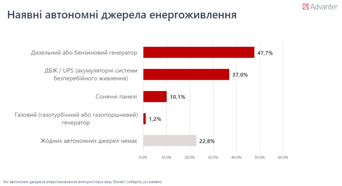 Энергетический тупик. Для предпринимателя отключение света - не неудобство, а фактор, который корректирует цифры в отчетах о прибылях и убытках. 46,6% предприятий теряют более 10% ежемесячного дохода из-за перебоев в энергоснабжении. В масштабах страны это колоссальные ресурсы, которые не были инвестированы, не пошли на зарплаты или налоги, а исчезли вместе с выключенным рубильником.