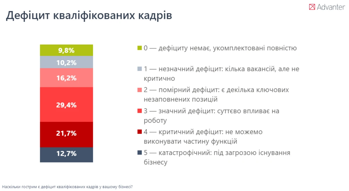 Кадровая пустота. Даже при наличии света бизнес сталкивается с вызовом, который невозможно решить деньгами. Дефицит кадров стал критическим для 63,8% опрошенных. Это не проблема найма, а системный кризис человеческого капитала.