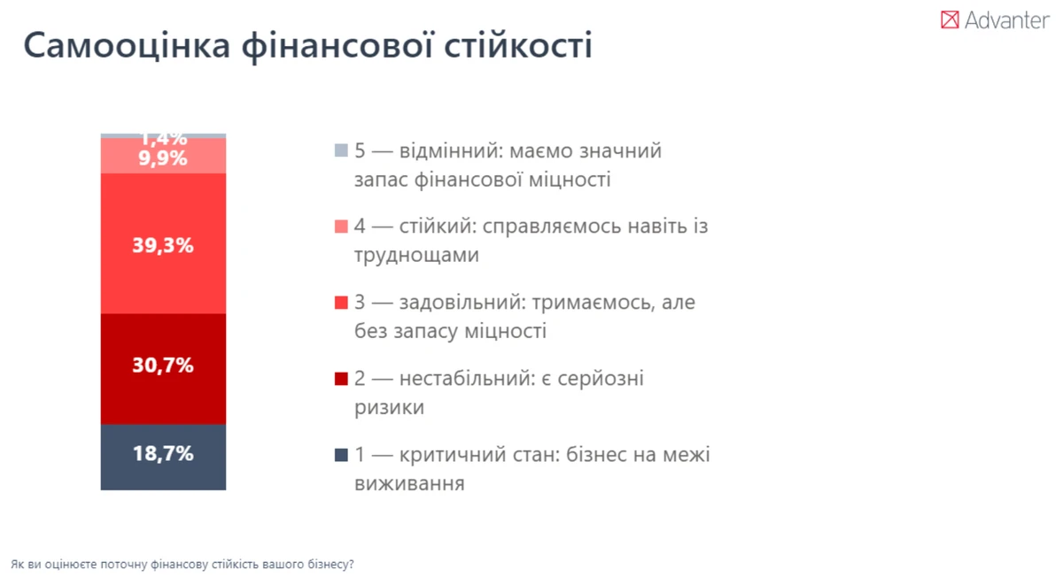 Однако исследование состояния микро-, малого и среднего предпринимательства в условиях войны от Advanter Group свидетельствует, что романтический период "несокрушимости" исчерпан. На смену ему пришла суровая и мрачная фаза истощения.
