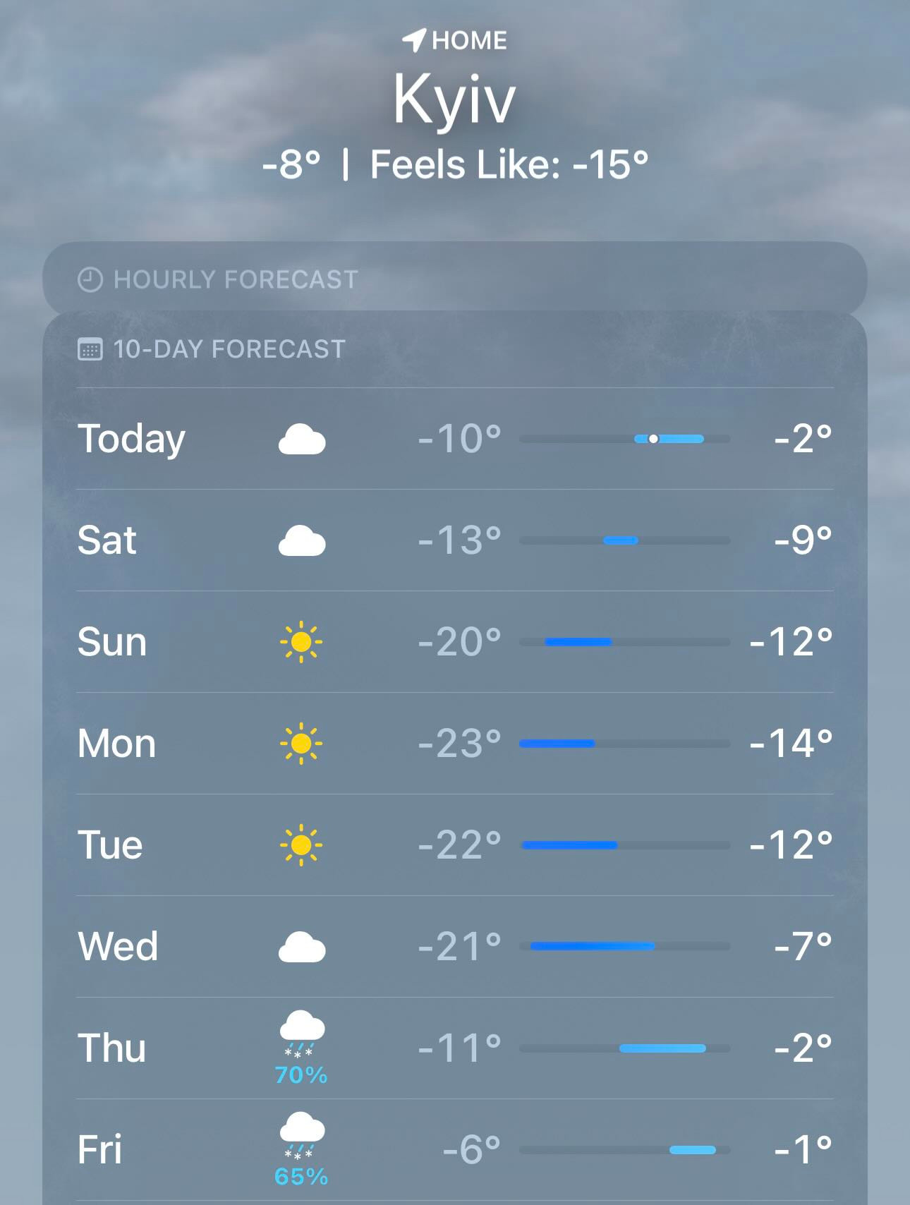 "Говорят, надо пользоваться этими специализированными, которые до минус 40 и тд", - написал Коваленко, и добавил последние прогнозы по Киеву в ближайшие дни.