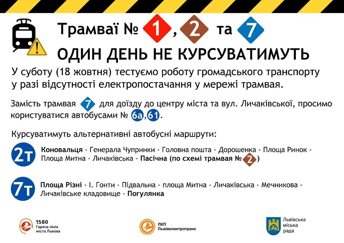 18 октября, во Львове протестуют транспортную инфраструктуру на случай возможных блэкаутов, будут отрабатывать сценарий локального обесточивания Лычаковского района.