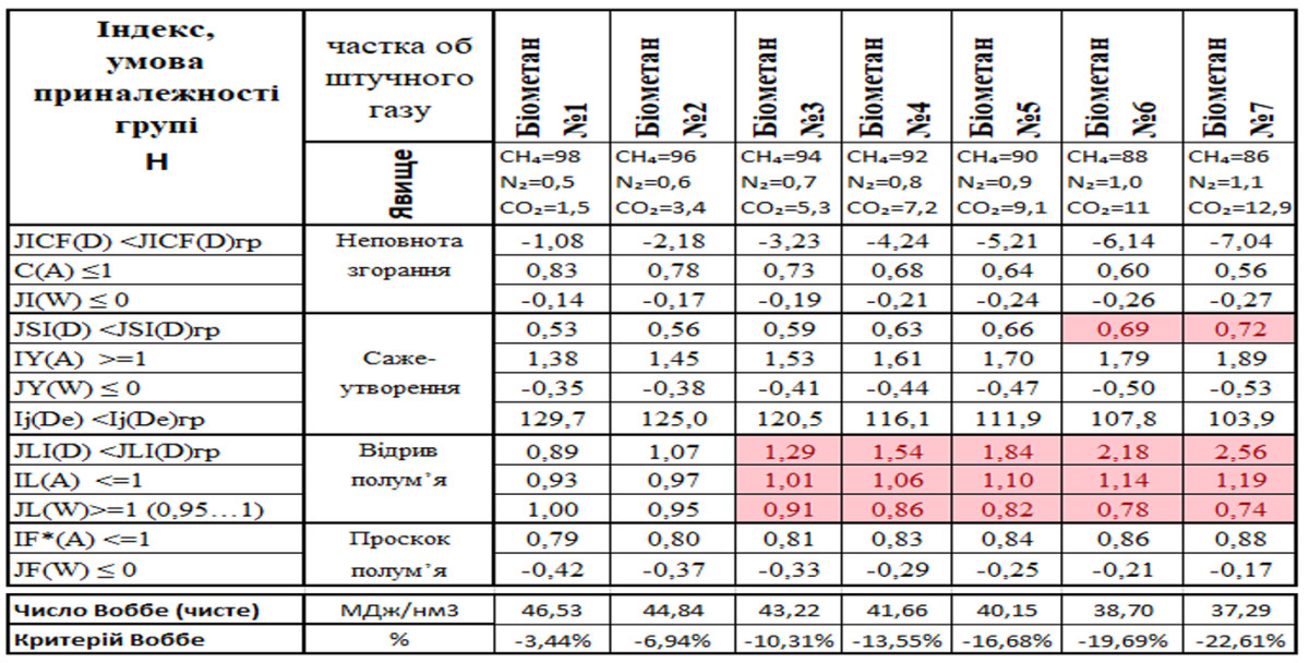 Сравнение критериев взаимозаменяемости биометанов и предельных газов группы L свидетельствует о сомнительности возможности использования газосжигательных агрегатов, выпускаемых для газов группы L, для того, чтобы сжигать все виды биометанов.