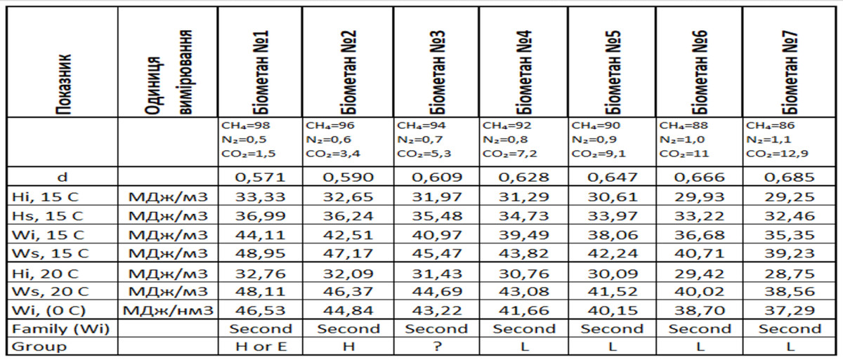 Но по параметрам качества биометана в этих нормативах указано лишь то, что они должны соответствовать требованиям, изложенным в другом ДСТУ -EN 16726:2019 (EN 16726:2015+А1:2018.IDT), который нормирует свойства горючих газов группы Н. Критерии взаимозаменяемости и повышения эффективности использования газосжигательного оборудования в зависимости от вида газа в этих документах не рассматриваются.