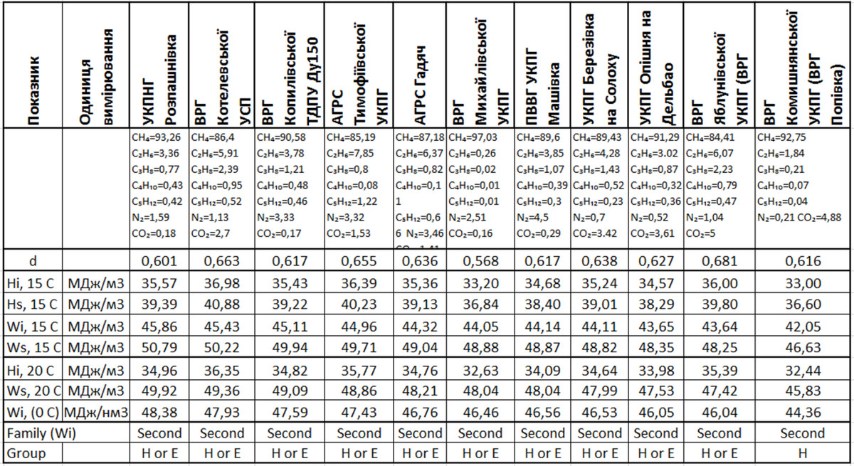 Ниже приведены различия между природными газами основных газовых месторождений Украины и эталонным газом приборов по группе L. В частности, отклонение критерия Воббе, ответственного за тепловую мощность топливосжигающих агрегатов составляет 12-22%, что значительно превышает норматив, что будет иметь негативные последствия, а работа агрегата будет сопровождаться значительным химическим недожогом горючего газа, образованием монооксида углерода и сажи. Другими словами, взаимозаменяемость между такими газами отсутствует.