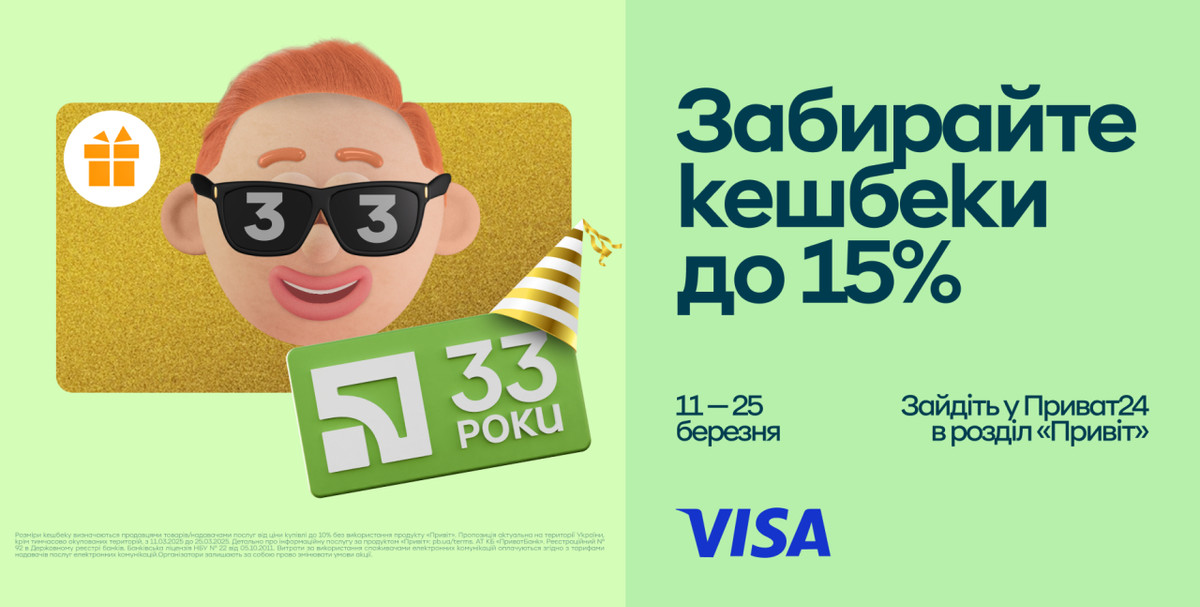 33 года ПриватБанку: спецпредложения и кэшбэки для держателей карт Visa