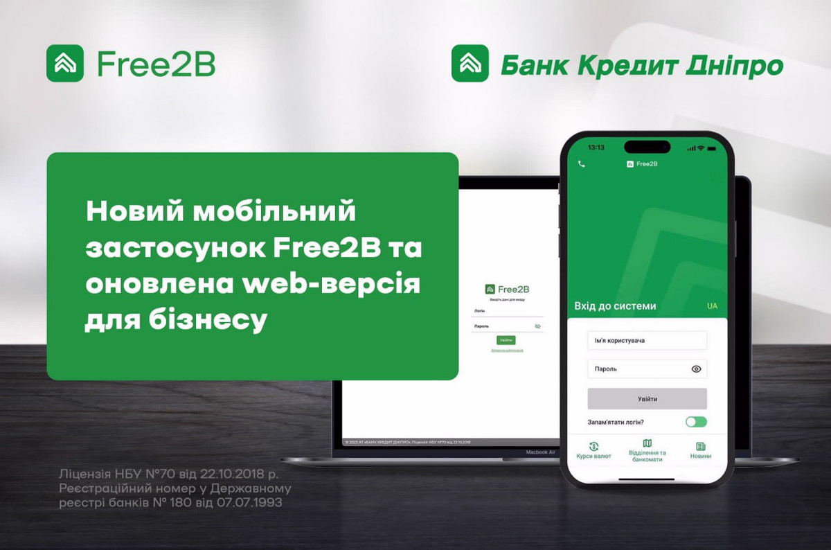 Банк Кредит Днепр запустил новое приложение Free2B для бизнеса и обновил веб-версию