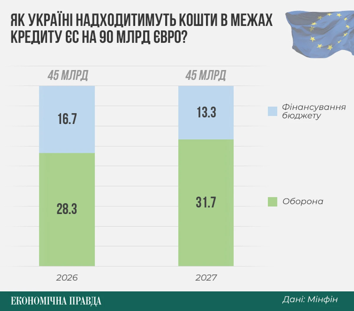 В течение длительного времени власти смотрели на 90-миллиардный кредит Евросоюза как на план покрытия финансовых потребностей воюющей страны в течение 2026-2027 годов. На практике же средства от ЕС начнут поступать лишь в середине 2026 года, а той части, которая предусмотрена на 2027-й, может оказаться мало.