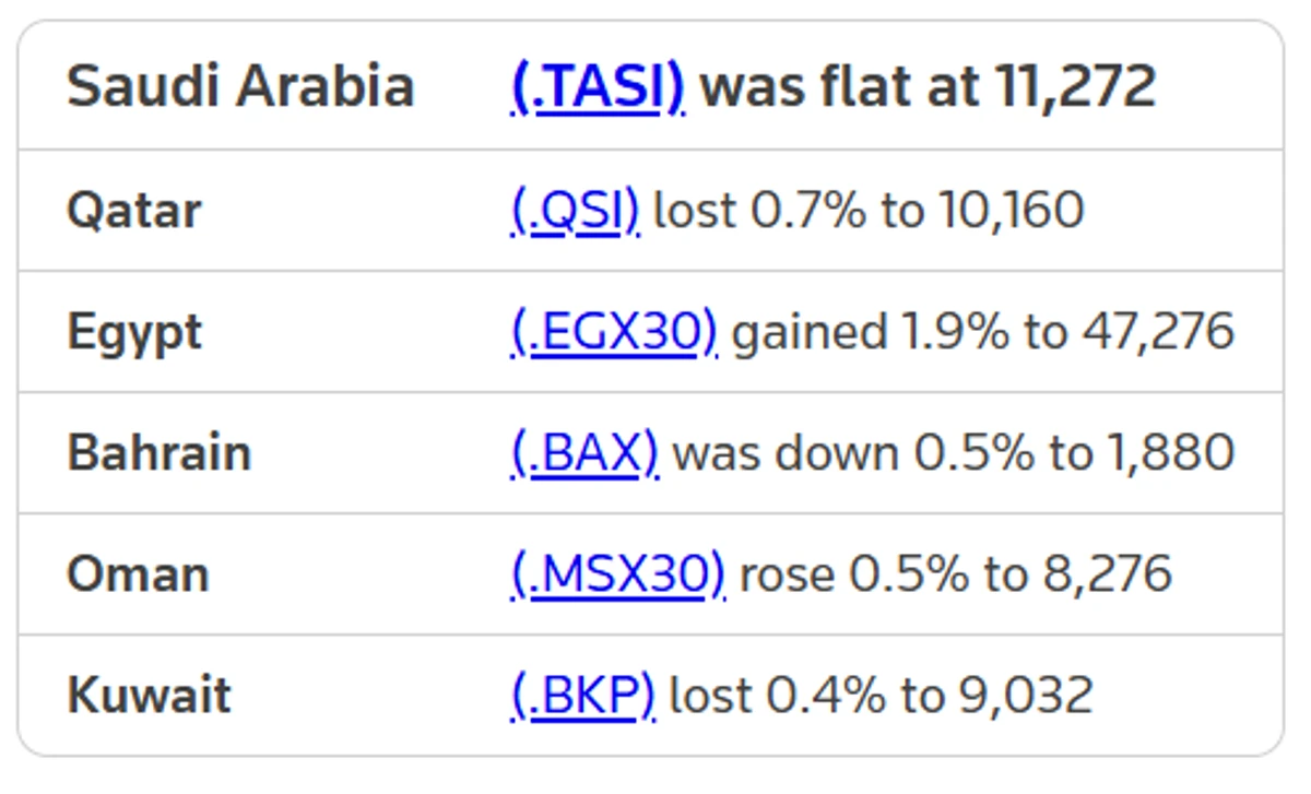 Индекс биржи Кувейта потерял 0,4%, а индекс Бахрейна снизился на 0,5%.