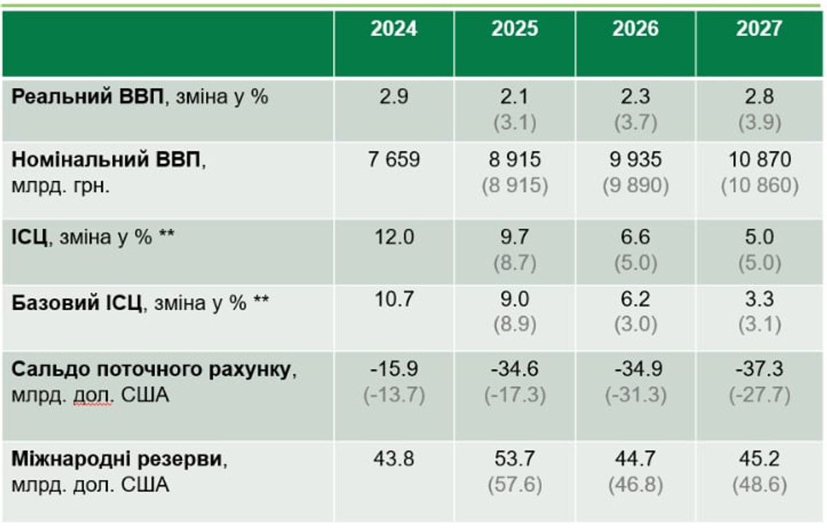 Базовый сценарий макропрогноза НБУ предусматривает получение 35 млрд долл. США международной помощи в 2026 году и 30 млрд долл. США в 2027 году.
