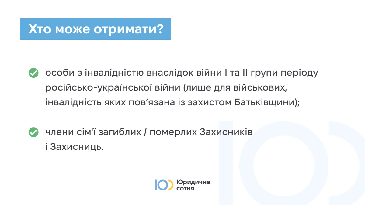 Кто может получить? Участники боевых действий со статусом ВПЛ и лица с инвалидностью вследствие войны со статусом ВПЛ.
