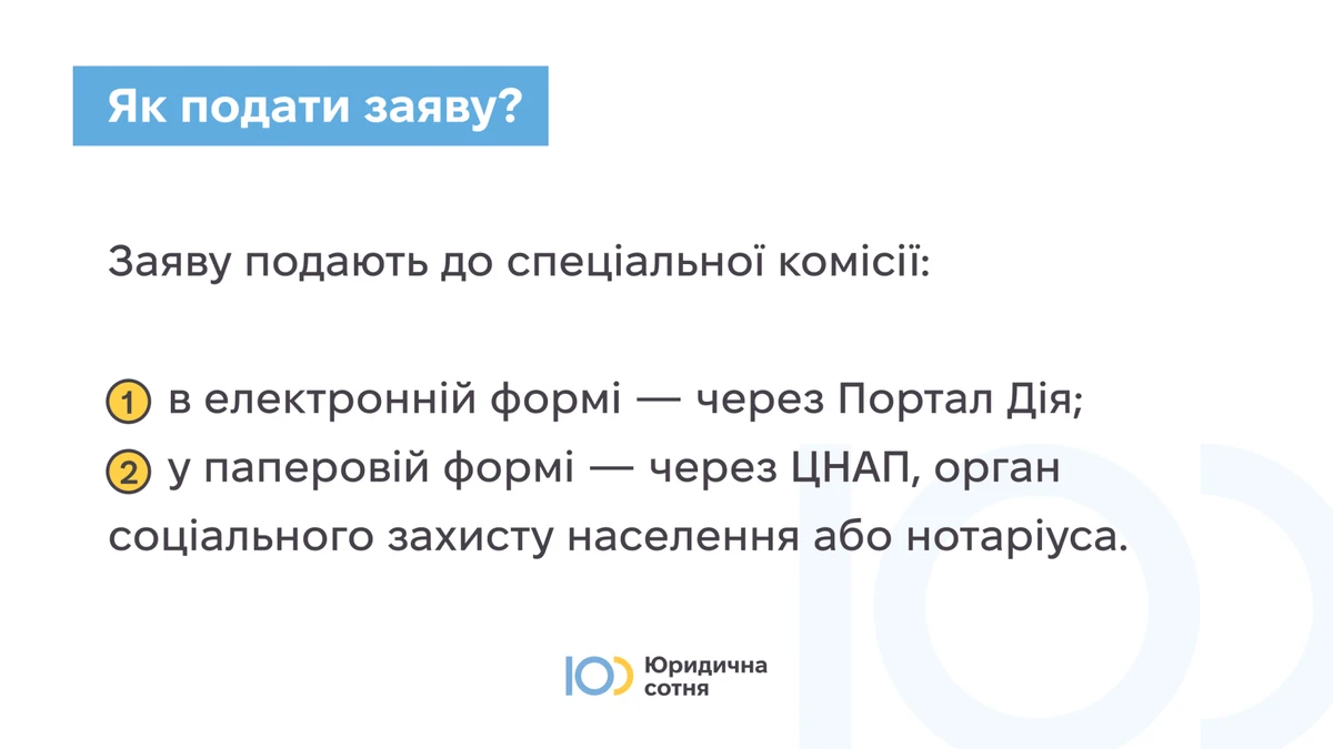 Куда обращаться? Заявление можно подать через ЦНАП, нотариуса или "Дію" (по состоянию на январь 2026 года функционирует механизм подачи заявления через портал "Дія").