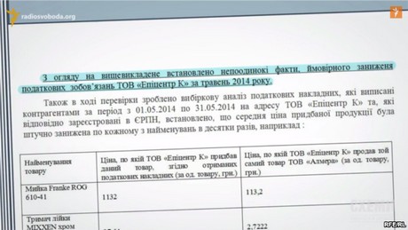 Это акт проверки ООО "Алмера" Государственной налоговой инспекцией в Днепровском районе Киева. Эта фирма, как говорится в документе, покупала товары в "Эпицентр К", а продавала в "Новацентр К".