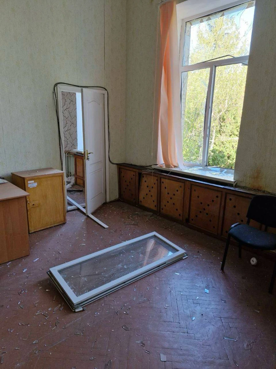 Пострадало помещение Купянской ГНИ, расположенное в одном из поселков Купянского района. В здании выбиты окна, двери, посечен фасад.
