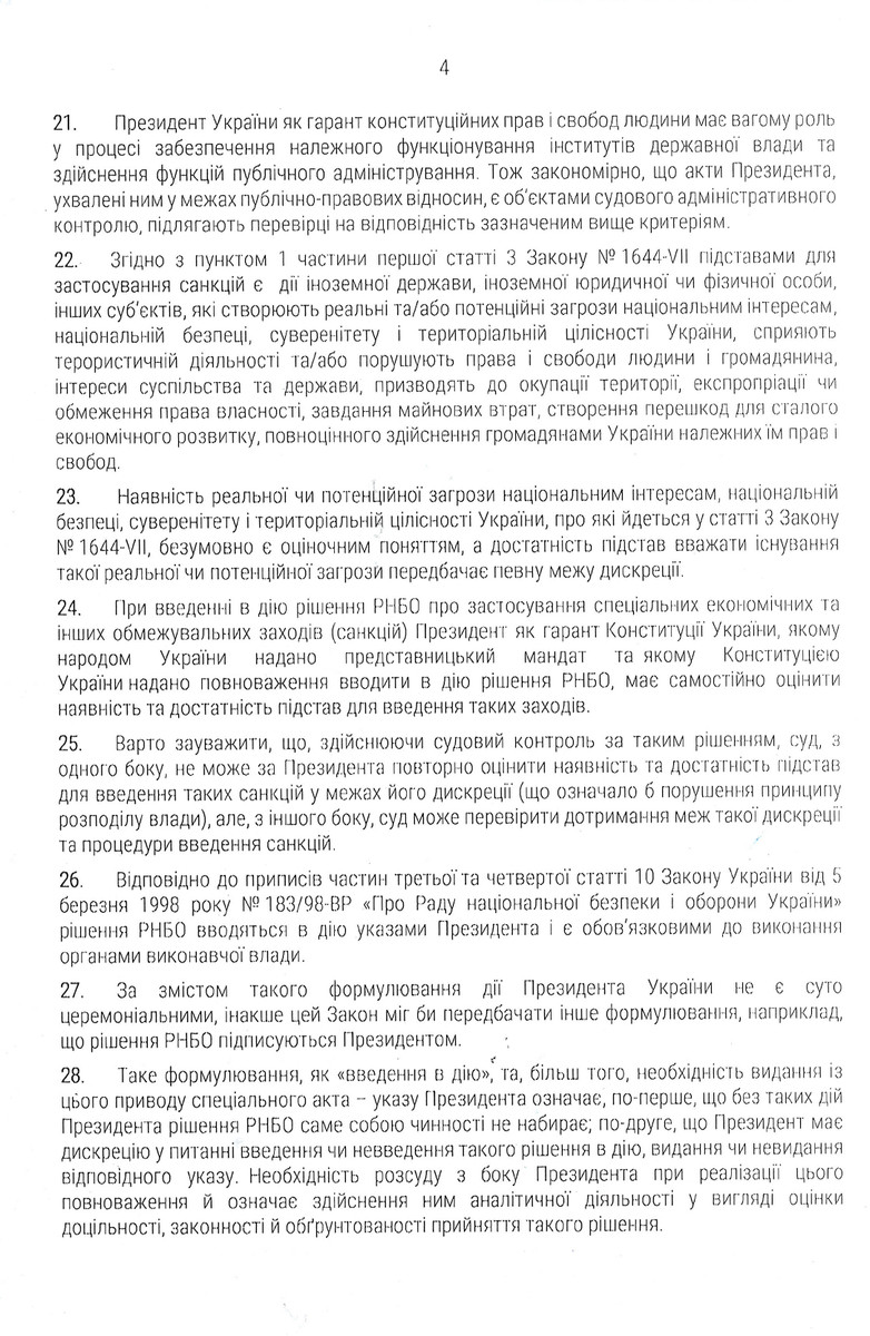 Ранее жалобы на санкции часто сталкивались с аргументом: мол, это сфера политической целесообразности, следовательно, суд не может вмешиваться. Однако судьи Кривенда и Мазур отмечают: даже в условиях широкой дискреции, действия президента должны соответствовать Конституции, законам и принципам верховенства права.