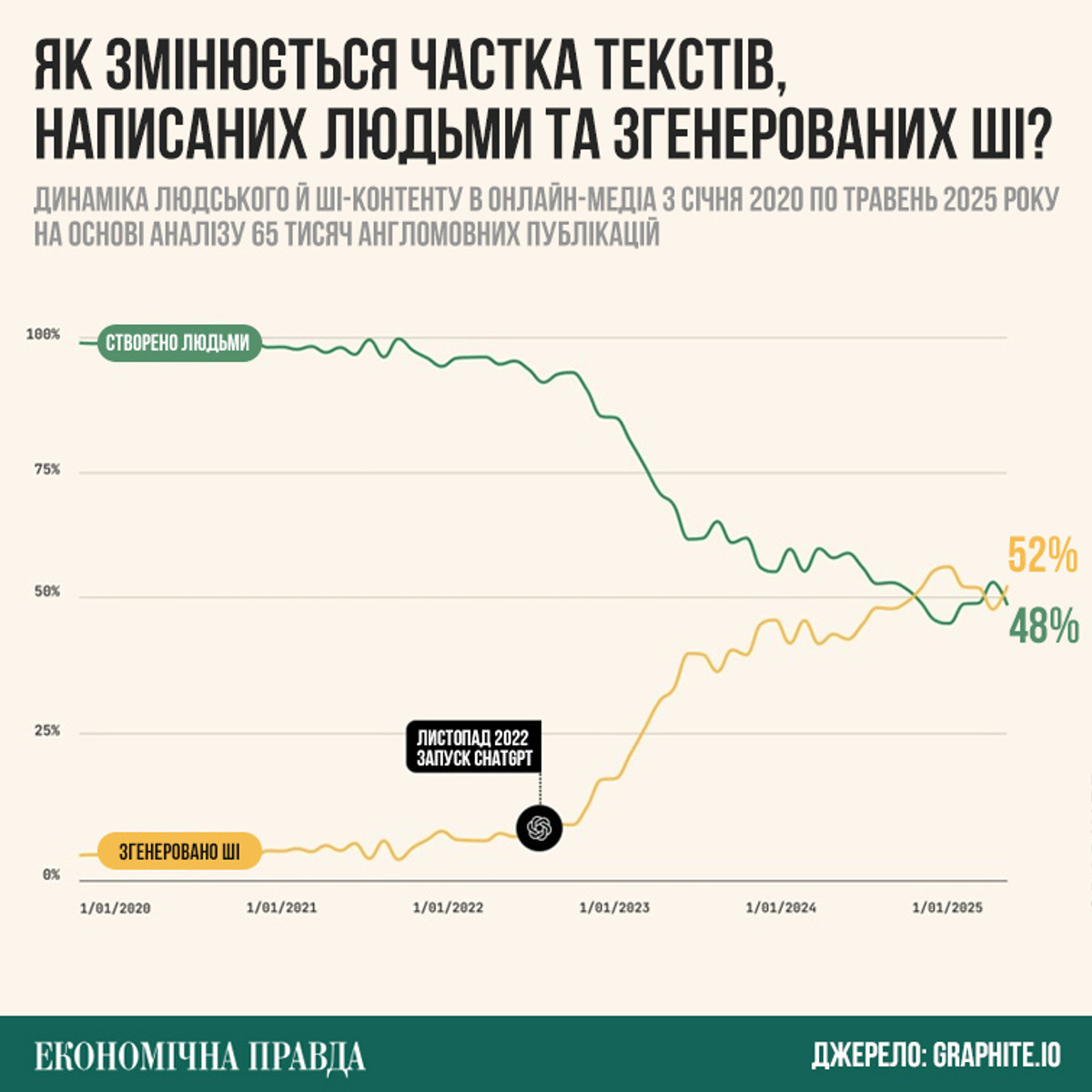 Этот термин начали употреблять еще в 2024 году, но реальные масштабы явления стали ощутимыми в 2025-м. По данным компании Graphite, 52% текстового контента в интернете создаются с помощью инструментов искусственного интеллекта.